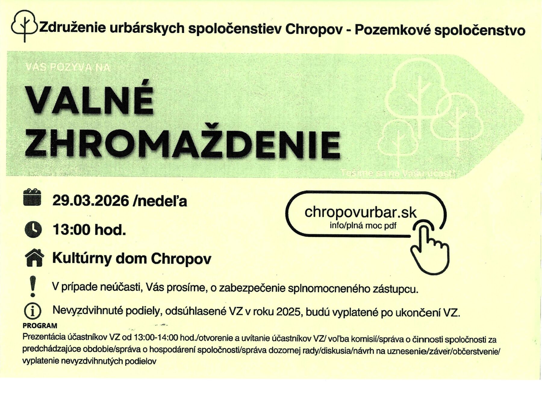29.03.2026 (nedeľa) o 13:00 hod. v KD Chropov.
