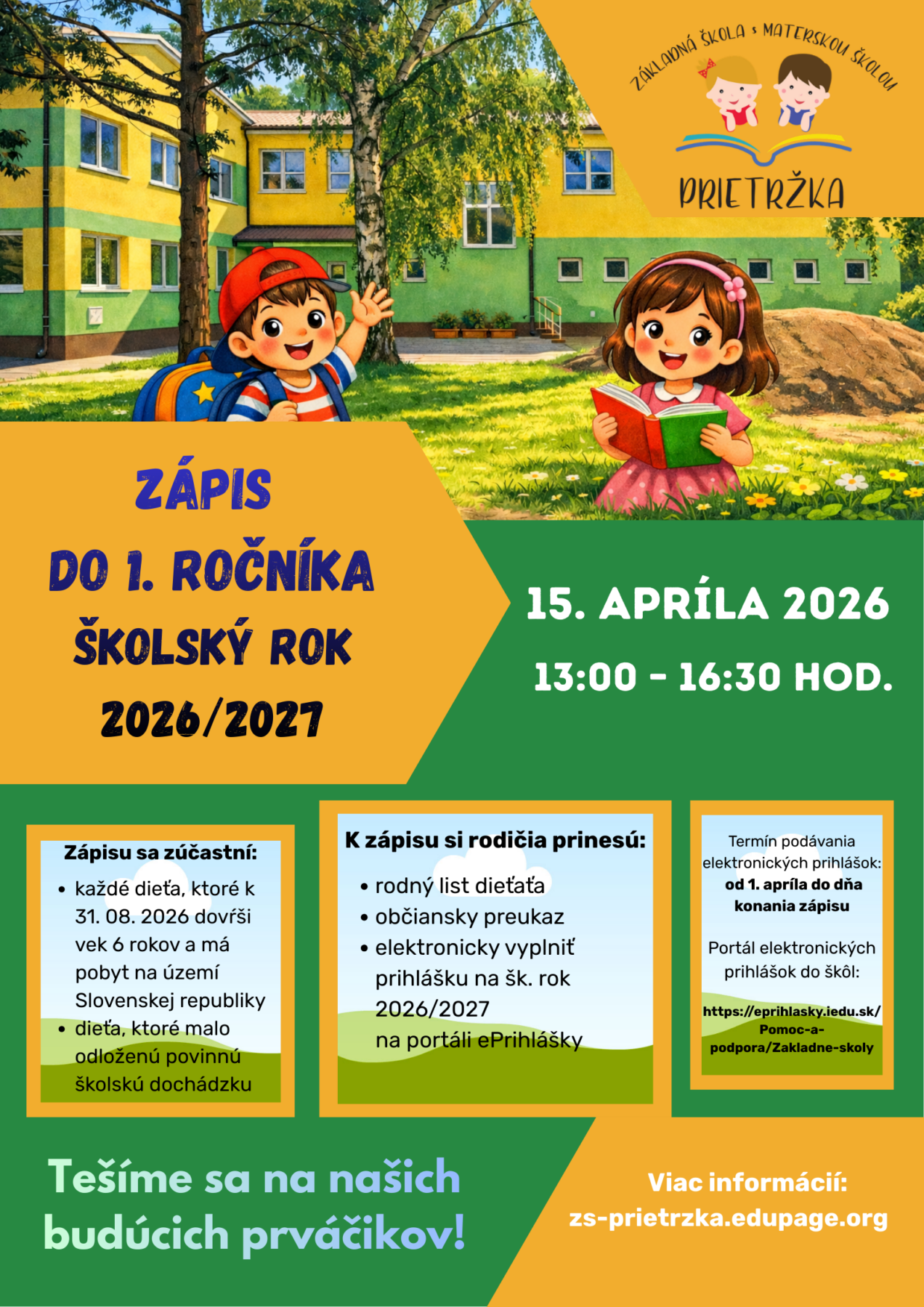 • elektronicky vyplniť prihlášku na šk. rok 2026/2027 na portáli ePrihlášky