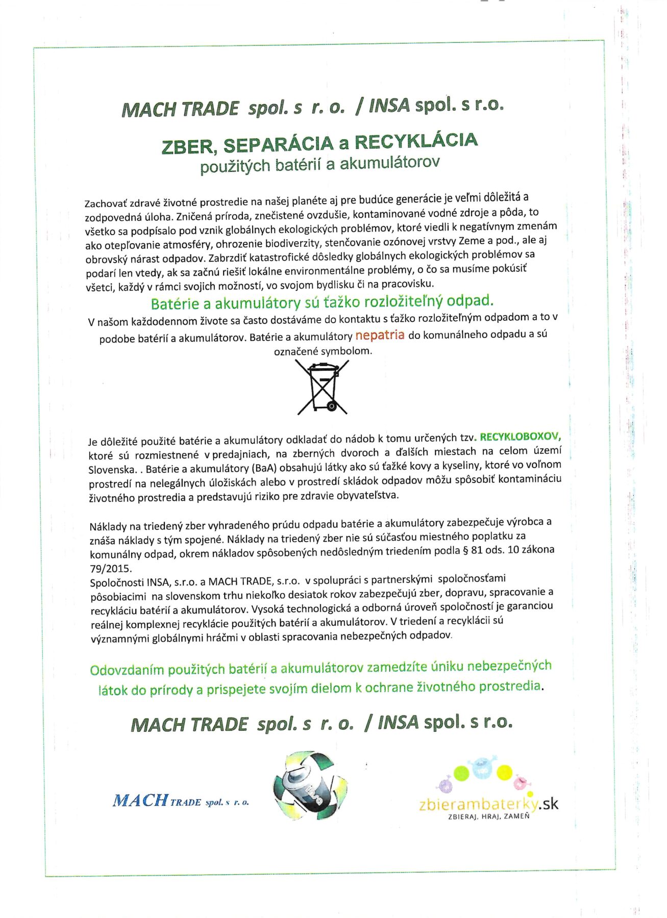 ZBER, SEPARÁCIA a RECYKLÁCIA použitých batérií a akumulátorov